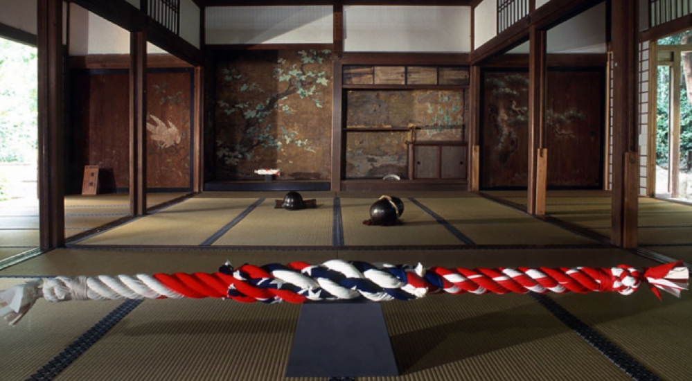 Material: Japanese hemp, steel pipe, Polished mirrored stainless steel