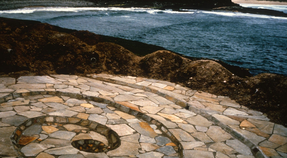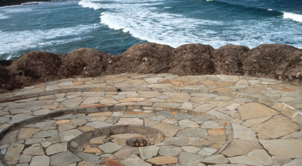 Material : local stone, earth soil, sea pink wild flowers