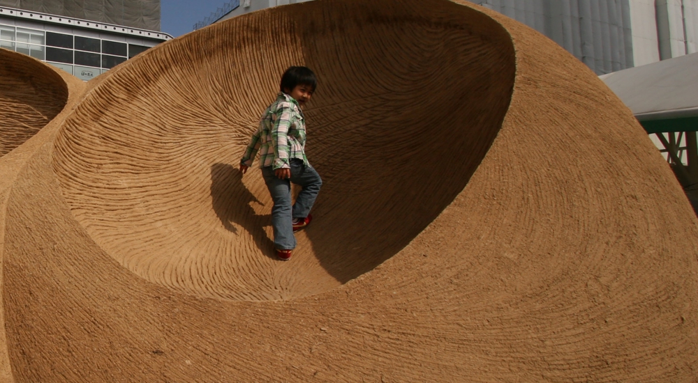 Material: soil, recycle newspaper, sisal fiber, cement,iron, stone, Earth Grain Concrete, Plants