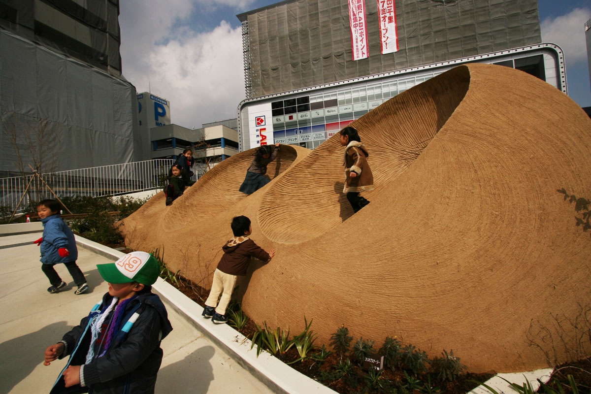 千里地層形成物語「地球縄ひろば」続編 クロノス/時の化身 かつて、ここに「縄ひろば」があった 1995年、阪神大震災がこの地域も襲った が、「縄ひろば」は変わらず 水は流れ,うるおいをもたらし続けていた 1991年から2007年までの16年間 人々に愛された広場だった 2008年、生まれ変わった広場に 「時の化身クロノス」が現れた