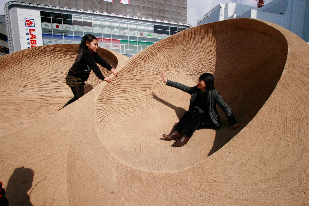 大地は動き 生命は巡る 時もあらゆるものも 止まらない 螺旋の動きのように つづいていく それはまるで縄のよう 環境芸術 / 彫刻家 八木マリヨ 2008年 2月 竣工